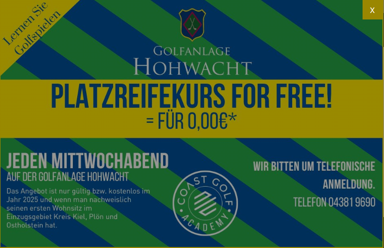 Auf der Golfanlage in Hohwacht haben Sie die Möglichkeit, den Golfsport zu erleben. An mehreren Mittwochnachmittagen und unter professioneller Anleitung.